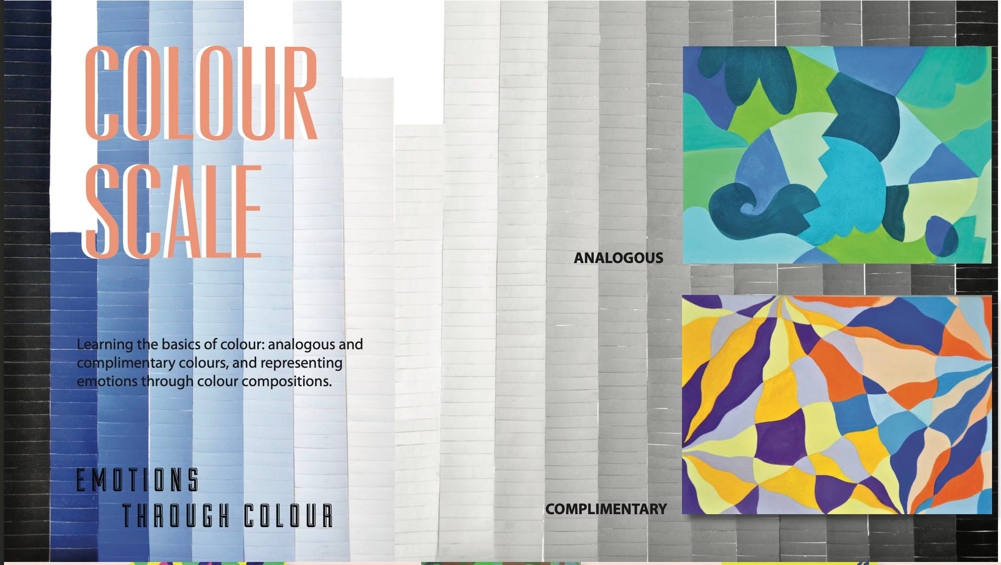 Thankfully this time we were only making a 10-stop greyscale from rich Black to bright white. I found most of them as ready-made coloured sheets and made the rest by rolling black ink on white paper.