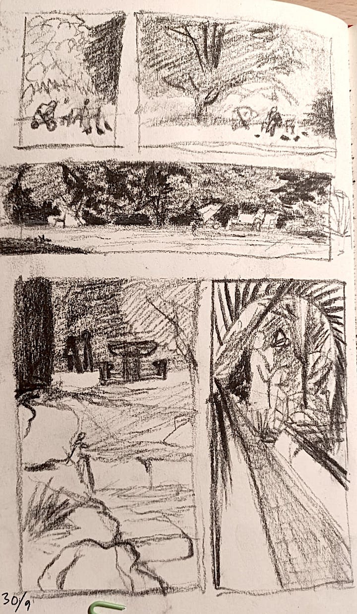 I’ve always been Compositionally-challenged (is that even a phrase?) and have usually picked the most obvious, easiest to draw or whatever frames first came to mind. Then I go to Pinterest and endlessly pore over images that are pure genius. My graphic design background (internally) adds injury to insult! Anyway, a few years ago I became obsessed with Proko’s Draftsmen podcast and discovered it was composition that I needed to work on. But their examples of the ‘greats’ only made it seem it was a pathological skill or ‘talent’ - inaccessible to me.